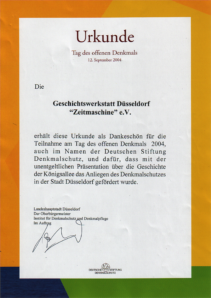 (Rundgang) Randzeichen --Wandzeichen: Kurioses und Nachdenkliches in der Altstadt Wulf Metzmacher So manches Hauszeichen, eine ganze Reihe von Gedenktafeln, aber auch Fassadendetails und wirkliche Kuriositäten schmücken öffentliche und private Häuser und Plätze der Altstadt. Und sie erzählen damit Geschichte(n). Eine Auswahl mit der Sympathie fürs Detail lädt zum genauen Hinsehen ein. Sonntag, 7. November, 11.00 --13.00 Uhr Treffpunkt: Musikpavillon vor dem Carsch Haus am H. Heine Platz